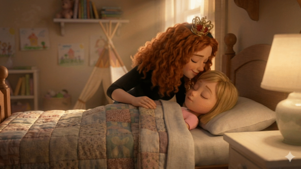 Or when it’s time for bed, you tuck them in, fluff their hair, tap their nose. They smile. They relax.